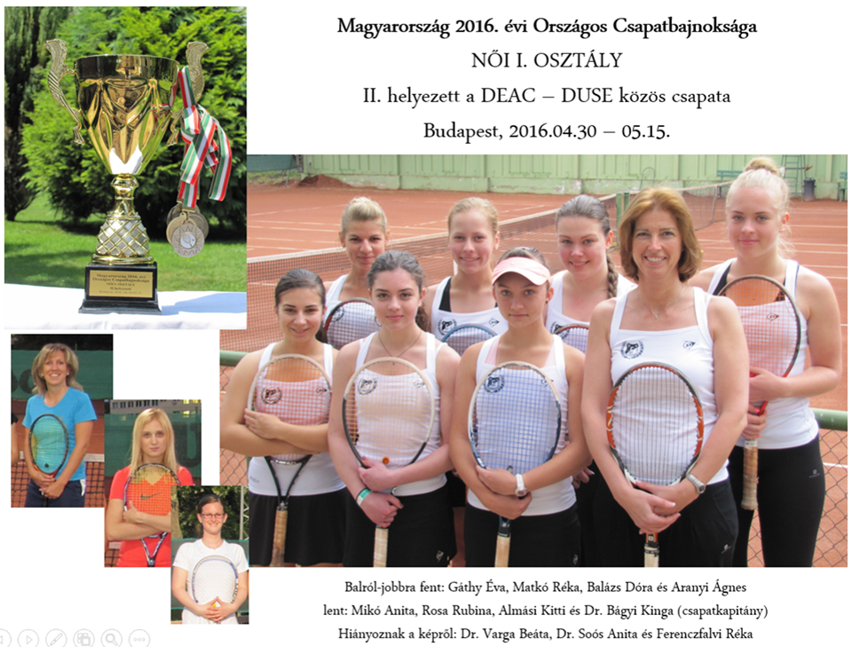 A DEAC női teniszcsapata ismét sikeresen szerepelt a női első osztályú csapatbajnokságban, az idei évet is második hellyel zárták a fiatalok.