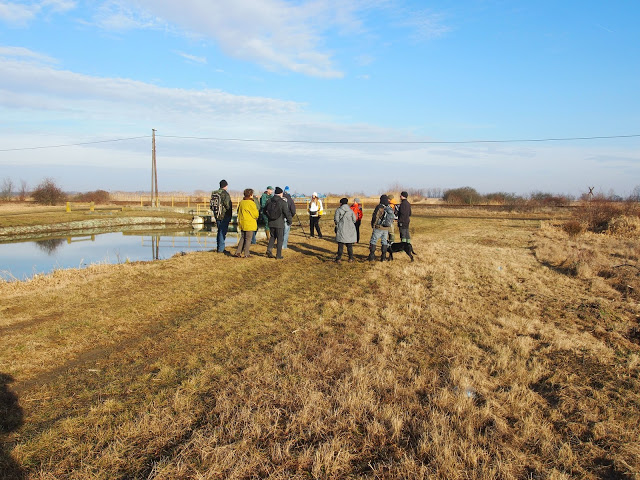 Január 17-én szombaton igazán kedvezett az idő a pusztai sétának. Tihanyi Gábor természetvédelmi őrszolgálatvezető-helyettes minden kérdésünkre tudott válaszolni. Sokrétű tájékoztatást nyújtott nem csak a rétisasok életmódjáról, hanem a vonulás-kutatás módszereiről, a természetvédelmi munka érdekességeiről és nehézségeiről is, a terület kultúrtörténeti érdekességeivel is fűszerezve. Ez kárpótolt minket azért, hogy a sasokat a pihenésük, táplálkozásuk megzavarása nélkül csak tácsővel és teleszkóppal tudtuk megfigyelni.