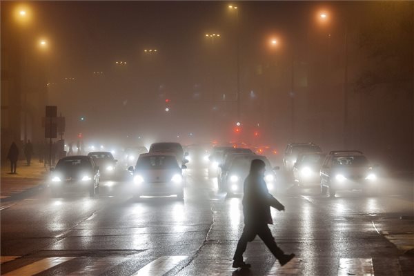 Gyalogosok haladnak a sűrű ködben Debrecenben 2016. január 27-én. MTI Fotó: Czeglédi Zsolt.