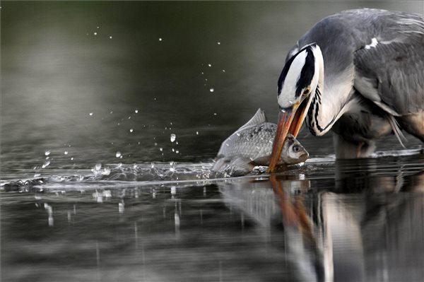 Halat fog egy szürke gém (Ardea cinerea) a Hortobágyi Nemzeti Park területén 2016. április 17-én. MTI Fotó: Kovács Attila