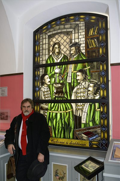 Fekete Károly tiszántúli református püspök a Református Kollégium felújított Csokonai-emlékszobájában felavatta Burai István festőművésznek Csokonai és diáktársai című festett üvegablakát.