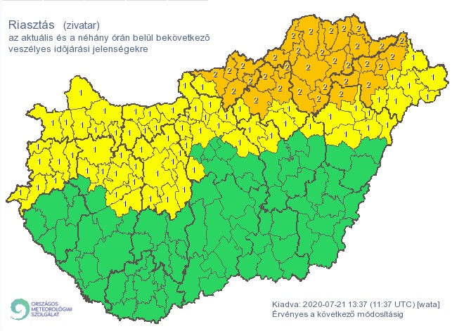 Borsod-Abaúj-Zemplén, Hajdú-Bihar, Heves, Nógrád és Szabolcs-Szatmár-Bereg megyére a felhőszakadás veszélye miatt is elsőfokú figyelmeztetést adtak ki.