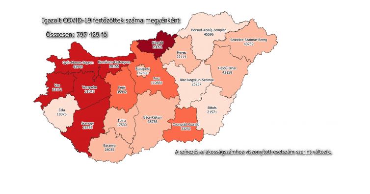 A kormányzati portálon azt írták: 797 429-re nőtt a Magyarországon azonosított fertőzöttek száma. Az elhunytaké 29 114-re, a gyógyultaké 618 608-ra emelkedett.