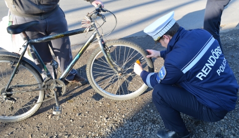 A rendőrök figyelemfelhívó jelleggel helyszíni bírság vagy feljelentés helyett világítóberendezést, láthatósági mellényt és küllő prizmát adtak át a hiányos felszereléssel rendelkező kerékpárosok részére.