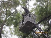 Leszakadt egy akácfa ága és nyolc-tíz méter magasságban fenn akadt egy másik ágon tegnap délután. A debreceni Bercsényi Miklós utca gyalogos és gépjármű forgalmát veszélyeztető ágat a megyeszékhely hivatásos tűzoltói gépezetes tolólétrán át, motoros láncfűrésszel távolították el.