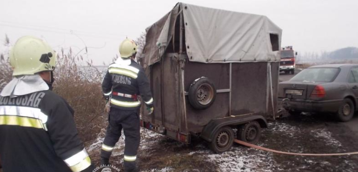 Árokba csúszott egy ló szállító utánfutót vontató személygépkocsi Nádudvar határában, tegnap délben. A püspökladányi hivatásos tűzoltók előbb átvizsgálták a gépjármű üzemanyagrendszerét, ami sehol nem szivárgott, majd kiemelték a két pónilovat a vontatmányból. Végül a felborult utánfutót két erőgép segítségével a kerekeire állították és visszaterelték abba a két lovat. Az eset során személyi sérülés nem történt.