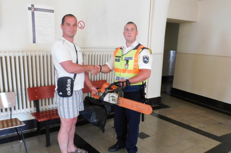 A hajdúböszörményi körzeti megbízott elfogta a lopásokkal gyanúsítható férfit és visszaadta a sértettnek az ellopott láncfűrészt.