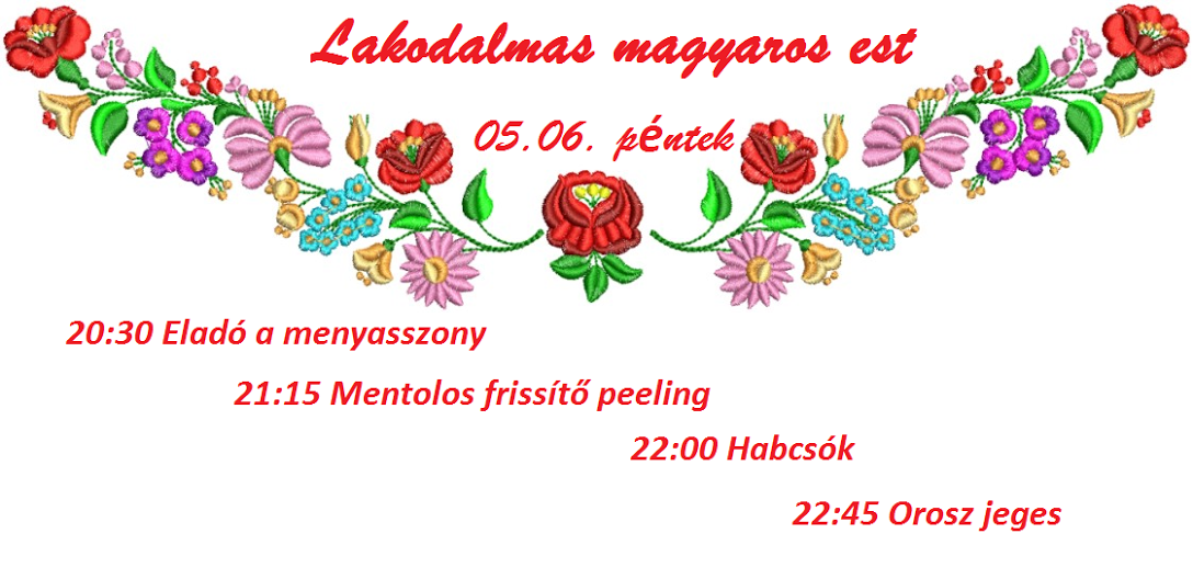 Múlt hét végén két nagyon kedves törzsvendég, Tündi és Lacus örök hűséget esküdtek egymásnak. Őket szeretnék köszönteni egy vidám hangulatú magyaros esttel.