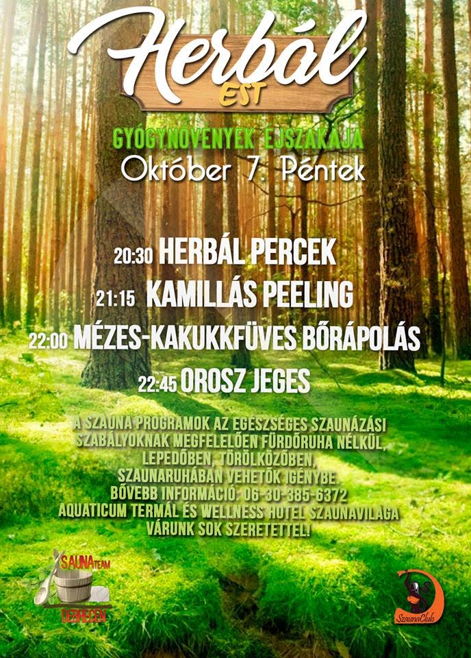 Pénteken Gyógynövények éjszakája az Aquaticum Spa Szaunavilágában.