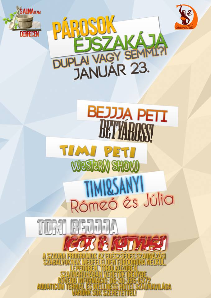 január 14, 2015Szabolcs SzilágyiSzóljon hozzá a Magyaros est az Aquaticum Szaunavilágban bejegyzéshez