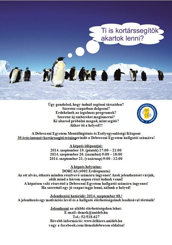 Bővebb információ: 52/518-627-es telefonszámon, a www.lelkiero.unideb.hu vagy a facebook.com/demekdebrecen oldalon.