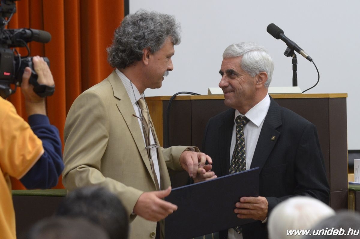 – Öröm látni, hogy a DAB Székház tele van. Ez mutatja azt a tiszteletet és őszinte szeretetet, ami a professzort övezi. A kedvéért még az ország távoli pontjairól is többen ide utaztak – fogalmazott Mátyus László, az Általános Orvostudományi Kar dékánja. Az egyetemi tanár szerint Tóth Csaba életpályája azt is példázza, hogy az üdvözüléshez nem mindig egy, és egyenes út vezet. A professzor egy olyan szakmában teremtett iskolát, melyben a sok műtét és oktatás mellett a tudomány művelésére nem mindig ideálisak a feltételek. Mátyus László továbbá kiemelte az ünnepelt fotóművészetét, és a Debreceni Egyetem Általános Orvostudományi Kar Kari Tanácsának nevében oklevéllel köszönte meg a professzor több évtizedes áldozatos munkáját.