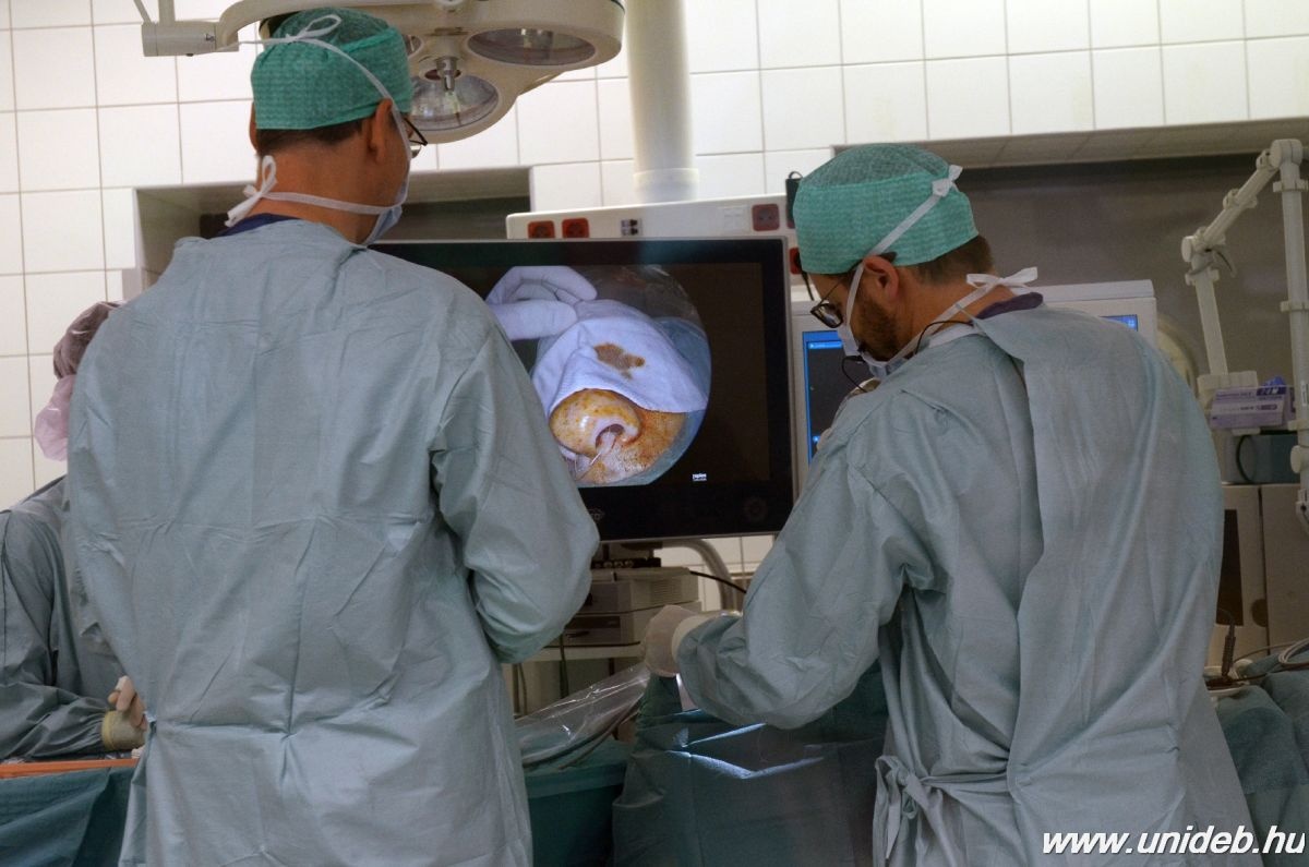 A “kulcslyuksebészet”, vagyis a neuroendoszkópia legújabb technikai fejlesztéseiről tartottak műtéti bemutatókat szerdán a Debreceni Egyetem (DE) idegsebészeti klinikáján.