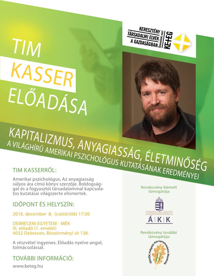 Az anyagiasság súlyos ára – Tim Kasser előadása Egyetem december 5, 2016Szabolcs SzilágyiSzóljon hozzá a Az anyagiasság súlyos ára – Tim Kasser előadása bejegyzéshez Egy híres amerikai pszichológus tart előadást Debrecenben.Facebook