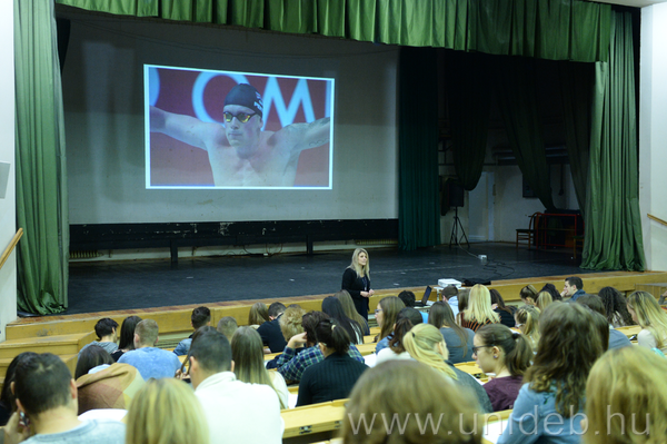 A rendhagyó előadáson az egyetem sportszervező és a kereskedelem marketing szakos hallgatói vettek részt, akik számos helyi sporteseményen láttak már el önkéntes munkát, néhányuk a vizes vb-n is komoly szervezői feladatokat végzett.