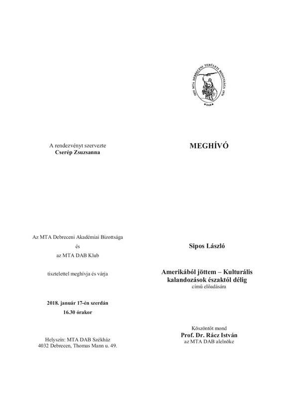 január 11, 2018Szabolcs SzilágyiSzóljon hozzá a Amerikából jöttem – Sipos László előadása a DAB székházban bejegyzéshez