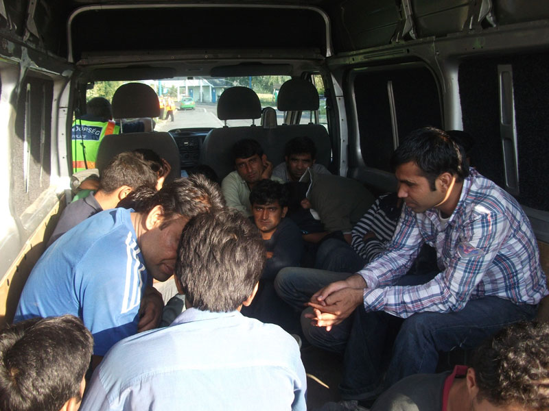 A rendőrök szeptember 30-án az M70-es autóúton ellenőriztek egy Szlovénia felé haladó, román rendszámú Fiat Ducatót. A járművet egy 43 éves román férfi vezette, mellette egy 36 éves, szintén román állampolgárságú férfi ült. A kisteherautó ablaktalan és ülések nélküli rakterében összezsúfolva, embertelen körülmények között tizennégy afgán és három bangladesi állampolgárt találtak. Közülük tizenegynek magyar tartózkodási engedélye, hatnak pedig csak fényképpel és vonalkóddal ellátott beléptető kártyája volt “igazolványként”.