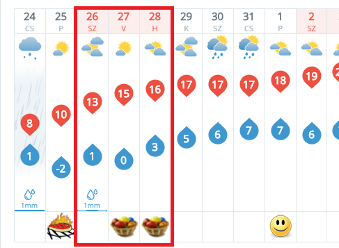 Egy korábbi előrejelzés még azt írta, hogy 20 fok körüli csúcshőmérsékletek is lehetnek a háromnapos hétvégén. Most úgy tűnik, ennél pár fokkal hűvösebb lesz, de mindenképpen kellemes időre számíthatunk.