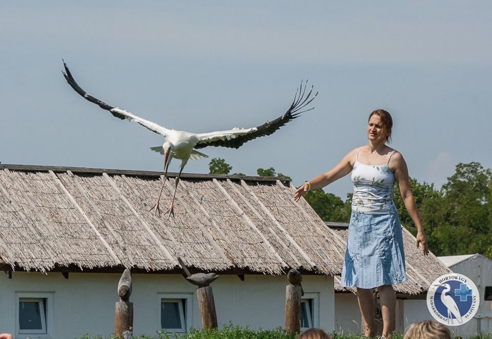 A szabadságukat visszanyert gólyák mellett solymászbemutató is szórakoztatta a vendégeket.