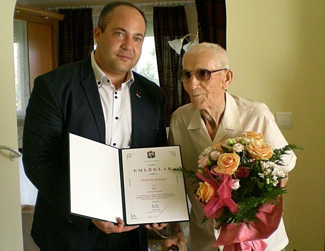 Ebből az alkalomból otthonában köszöntötte őt Papp Viktor önkormányzati képviselő, valamint Siposné Hüse Judit a polgármesteri hivatal szociális osztályának munkatársa. Török István Lajos aktív éveiben asztalosként dolgozott. Büszkén említette, hogy feleségével immár 67 esztendeje házasok.