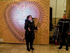 Koós Anikó, az Angyalliget Közhasznú Alapítvány kuratóriumának elnöke megköszönte, hogy már eddig ilyen sokan támogatták az autista gyermekekkel foglalkozó alapítvány tevékenységét és eddig több mint 200 ezer forint sikerült összegyűjteni. Rámutatott, hogy a gyerekek maguk módján szerették volna megköszöni az odafigyelést, ezért saját készítésű díszekkel öltöztették fel a Nyitott Városháza belső udvarát.