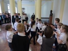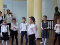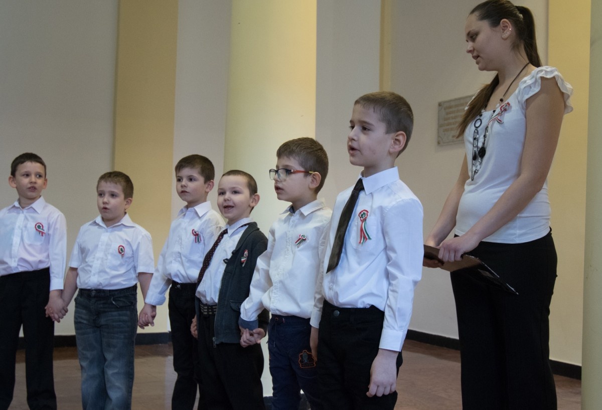 Március 15. alkalmából a debreceni Levendula Óvoda Katica nagycsoportjának kicsinyei mutatták be ünnepi műsorukat 2018. március 14-én, szerdán a Régi Városházán, a Nagytanácsterem előtti Kossuth Lajos mellszobránál.