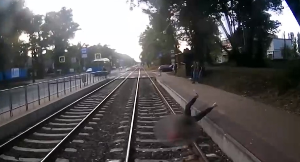 A megállóba érkező villamos elé zuhant egy fiatal férfi Budapesten, a balesetet a jármű kamerája rögzítette.