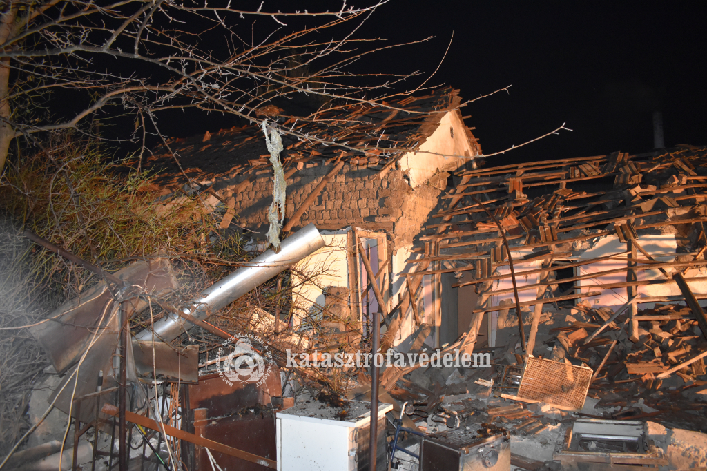 A tájékoztatás szerint a Táncsics Mihály utcai detonáció következtében a melléképület összedőlt, a főépület tetőszerkezete pedig károkat szenvedett.