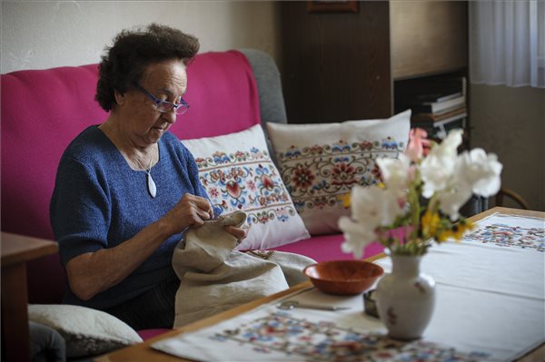 A Népművészet Mestere díjjal idén kitüntetett Bujdosó Sándorné szövő, hímző debreceni otthonában 2016. szeptember 2-án. MTI Fotó: Czeglédi Zsolt