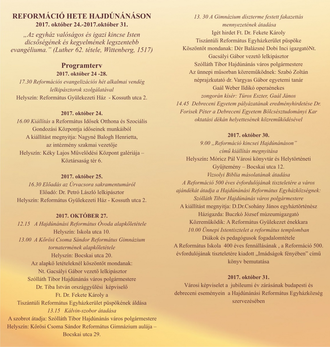 Október 24-31. között tartják a Reformáció Hetét a városban. Itt a részletes program.