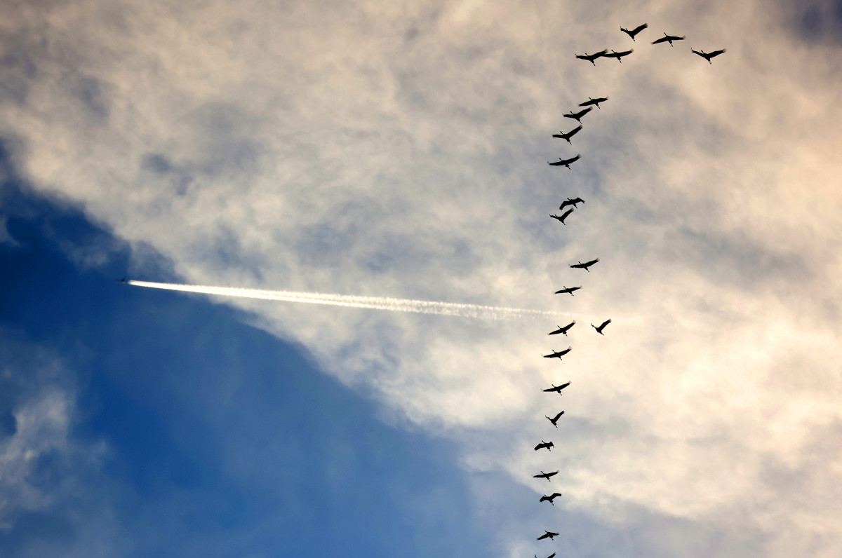 Szeged, gyülekeznek, darvak, daru, madár, költöző madár, november, ősz, Fehér-tő, természet