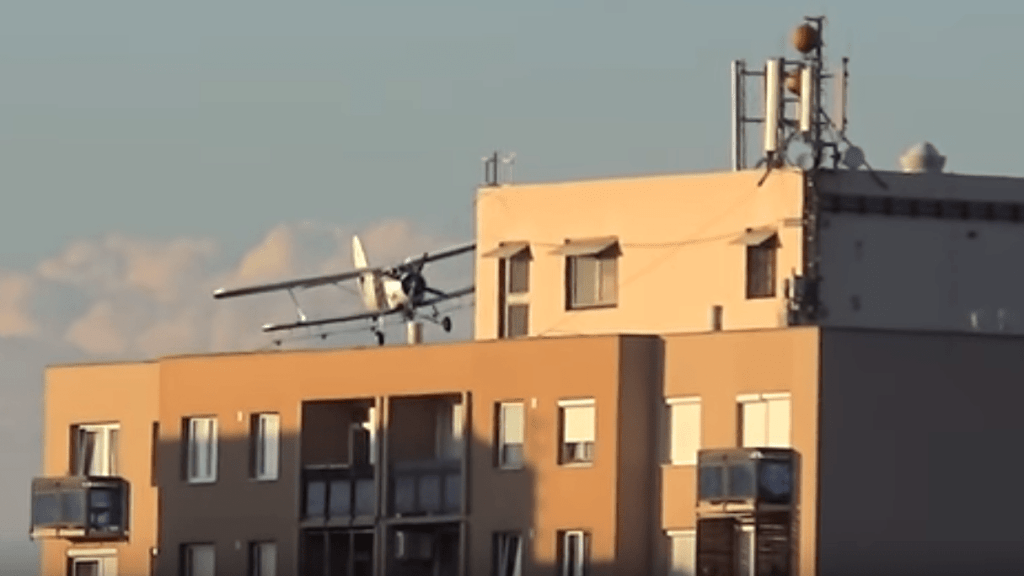 Alig pár méterre húzott el egy panelház felett egy permetező repülőgép Nyíregyházán egy, a YouTube-ra feltett videó tanúsága szerint.