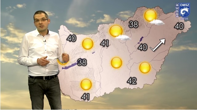 Honlapjukon hétfőn közzétett videóban Tóth Tamás 2050. július 10-ei előrejelzésében azt emelte ki: “ismét pusztító vihar söpört végig az országon”. Sopronban 150 kilométer/órás széllökést rögzítettek, Keszthelyen 10 perc alatt 39 milliméternyi eső hullott le – szerepelt a fiktív időjárás-jelentésben. Elmondása szerint éjszaka is általában 20 fok felett, többfelé 30 fok körül alakul a hőmérséklet. Napközben jellemzően 40 fok körül alakulnak a csúcsértékek. Az ország legmelegebb táján, az Alföld déli részén akár 42 fok is lehet. A távolabbi előrejelzésében is azt mondta: a nappali maximumok 40-43 fok körül alakulnak, s csapadékra nincs esély – fejtette ki fiktív időjárás-jelentésében Tóth Tamás.