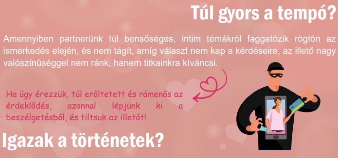 Az online kampányhoz kapcsolódó infografika a https://nki.gov.hu/it-biztonsag/tanacsok/mire-figyeljunk-oda-online-tarskereseskor/, a kisfilm a https://youtu.be/EnrGwPl9RxM linken érhető el.
