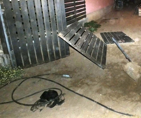V. László testvére V. Róbert betörte a kerítés kapuját és bement az udvarra, ahol az ott tartózkodó férfit és fiát megöléssel fenyegette. A 41 éves S. János ekkor a kezébe vette az ajtó mellé támasztott baltáját, aminek tompa felével egyszer megütötte támadóját, minek következtében a 35 éves férfi orra eltört.