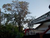 Életveszélyesen megdőlt egy ecetfa Derecskén az Erkel Ferenc utcában. A tizenöt méteres fát csak félig tartotta a gyökere ezért a hajdúszoboszlói és berettyóújfalui hivatásos tűzoltók, motoros láncfűrész segítségével kivágták a növényt.