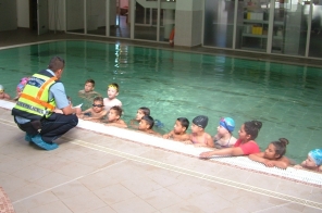 A Balmazújvárosi Rednőrkapitányság munkatársa 2016. május 31-én az „Iskola rendőre” program keretén belül egy balmazújvárosi általános iskola diákjainak balesetmegelőzési előadást tartott egy helyi gyógyfürdőben, ahol a tanulók úszásoktatáson vettek részt. Csige Imre r. főtörzsőrmester az előadáson tájékoztatta a gyerekeket a veszélyt jelző táblákról, a mélyvíz és a kánikula veszélyeiről, illetve a szabad vizeken kijelölt fürdőhelyeken történő úszás veszélyeiről. A program végén az előadó az Országos Balesetmegelőzési Bizottság által biztosított ajándékot adott a kicsiknek.