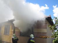 Teljes terjedelmében égett egy hatvan négyzetméteres ház egyik helyisége tegnap délben, Debrecenben és Mikepércs között, a Mészáros Gergely kertben. Az épület tetőszerkezetére is átterjedő tüzet a debreceni hivatásos tűzoltók három vízsugárral fojtották el, valamint két, egyenként tizenegy és fél kilogrammos gázpalackot is kihoztak az épületből. A palackokat hőhatás nem érte. Az eset során személyi sérülés nem történt.