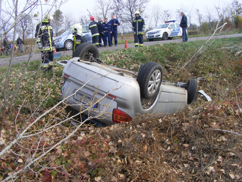 Berettyóújfalu közelében egy autó árokba hajtott, egy fő könnyű sérüléseket szenvedett.