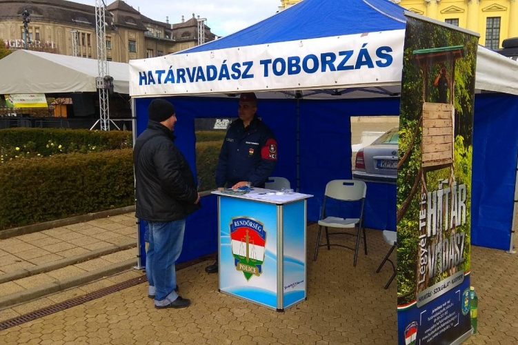 A Hajdú-Bihar Megyei Rendőr-főkapitányság toborzócsoportja 2017. november 11-én Hajdúszoboszlón és Debrecenben, a Kossuth téren, a Márton napi Libalakoma Egri Borcsillagokkal rendezvényen várták a határvadász-képzés iránt érdeklődőket.