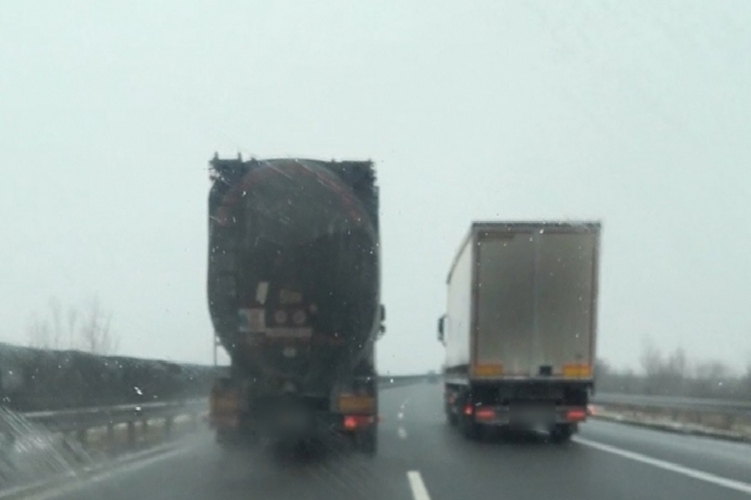 Felhívjuk a járművezetők figyelmét, hogy tilos előzni az azonos irányú forgalom számára két forgalmi sávval rendelkező autópályán és autóúton – 6 és 22 óra között – a 7500 kg-ot meghaladó megengedett legnagyobb össztömegű tehergépkocsival, vontatóval, valamint e járműből és pótkocsiból álló járműszerelvénnyel!