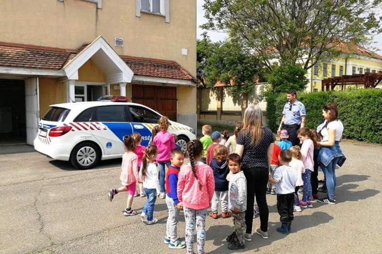 A rendőrkapitányság udvarán az óvodások megtekinthették a megkülönböztető jelzést használó járműveket és rendőrautókba is beülhettek. Ezt követően a kicsik a bűnügyi technikusok munkájába is bepillantást nyertek.