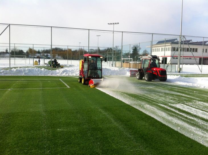 Hétfő reggelre összesen 8 centiméter hótakaró fedte a Debreceni Labdarúgó Akadémia pályáit. A pályamunkások azonnal hozzáláttak a műfüves játékterek letakarításához, annál is inkább, mert a megfagyott hóréteg sérülést okozhat, az utánpótlás csapatok pedig már ma elkezdik a munkát.