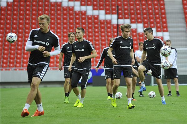 A norvég Rosenborg csapatának edzése egy nappal a Debreceni VSC elleni labdarúgó Európa Liga-selejtező mérkőzés előtt a debreceni Nagyerdei Stadionban 2015. július 29-én. MTI Fotó: Czeglédi Zsolt