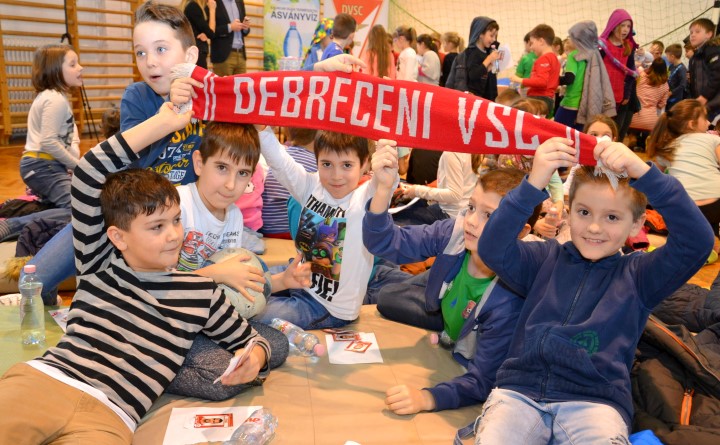 A DVSC néhány játékosa ismét meglátogatott egy helyi sulit, szerdán a Szoboszlói Úti Általános Iskola diákjaira került sor.