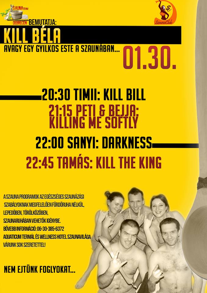 Kill Béla – avagy egy gyilkos est a Debreceni Aquaticum Szaunavilágában.