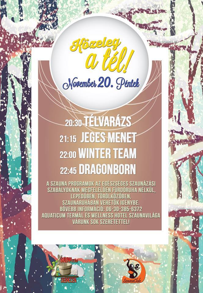 Közeleg a tél… na, ez nem a Trónok harca előzetes! Hanem a péntek esti télváró szaunaest a debreceni Aquaticum Szaunavilágban!